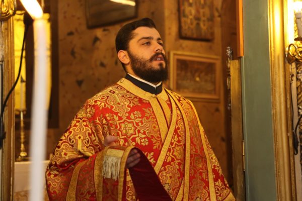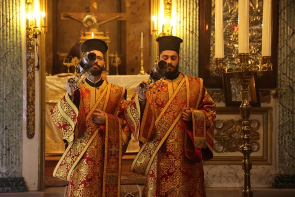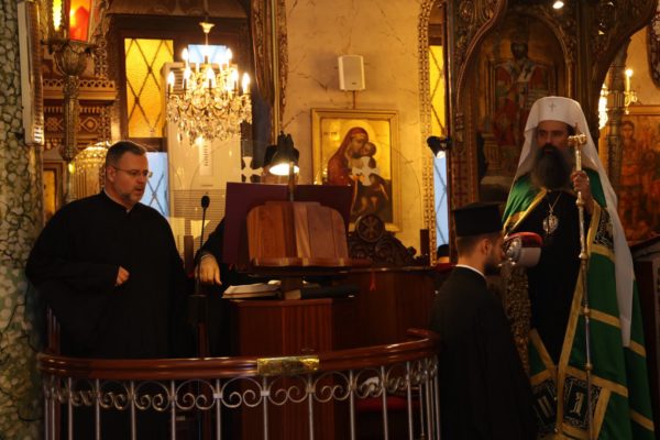 Τη Θεία Λειτουργία τέλεσε ο Αρχιμανδρίτης Χαράλαμπος Νίτσεφ πλαισιούμενος από διακόνους.