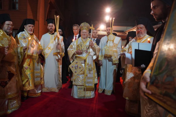 Η Α.Θ. Παναγιότης ο Οικουμενικός Πατριάρχης κ.κ. Βαρθολομαίος προέστη τα μεσάνυχτα του Μ.Σαββάτου της τελετής της Αναστάσεως στον αυλόγυρο του Πατριαρχείου, περιστοιχιζόμενος από τους Σεβ. Μητροπολίτες Βιζύης κ. Αθηναγόρα, Φιλαδελφείας κ. Μελίτωνα, Μυριοφύτου και Περιστάσεως κ. Ειρηναίο, Μύρων κ. Χρυσόστομο, Ικονίου κ. Θεόληπτο, και Σελευκείας κ. Θεόδωρο, καθώς και από τους κληρικούς της Πατριαρχικής Αυλής, και ακολούθως απηύθυνε Μήνυμα για την εορτή του Αγίου Πάσχα προς το πλήρωμα της Εκκλησίας, και ιδιαιτέρως προς τις νέες και τους νέους.