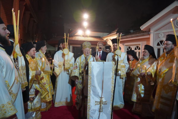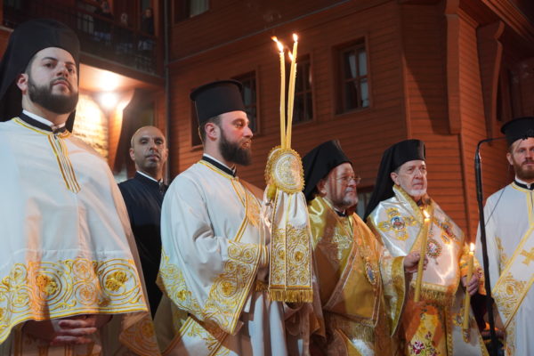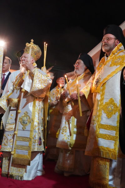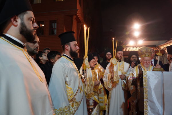 Η Α.Θ. Παναγιότης ο Οικουμενικός Πατριάρχης κ.κ. Βαρθολομαίος προέστη τα μεσάνυχτα του Μ.Σαββάτου της τελετής της Αναστάσεως στον αυλόγυρο του Πατριαρχείου, περιστοιχιζόμενος από τους Σεβ. Μητροπολίτες Βιζύης κ. Αθηναγόρα, Φιλαδελφείας κ. Μελίτωνα, Μυριοφύτου και Περιστάσεως κ. Ειρηναίο, Μύρων κ. Χρυσόστομο, Ικονίου κ. Θεόληπτο, και Σελευκείας κ. Θεόδωρο, καθώς και από τους κληρικούς της Πατριαρχικής Αυλής, και ακολούθως απηύθυνε Μήνυμα για την εορτή του Αγίου Πάσχα προς το πλήρωμα της Εκκλησίας, και ιδιαιτέρως προς τις νέες και τους νέους.