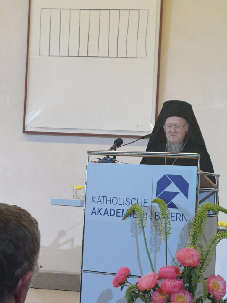 Κατά τήν μεγαλειώδη τελετή πού ἀκολούθησε, μίλησαν μέ τή σειρά οἱ ἐπί κεφαλῆς τῶν δύο Ἱδρυμάτων πού τίμησαν τόν Οἰκουμενικό Πατριάρχη, Ἐλλογιμ. Δρ. Achim Budde, Διευθυντής τῆς Ἀκαδημίας, καί Πανοσιολ. Δρ. Marianus Bieber, Ἡγούμενος τῆς Μονῆς Niederaltaich, ὁ Ὑπουργός Ἐπικρατείας τῆς Βαυαρικῆς Κυβερνήσεως, ἁρμόδιος διά ζητήματα Ὁμοσπονδίας καί Μέσων Ἐνημερώσεως, Ἐξοχ. Δρ. Florian Herrmann, ὁ Εὐαγγελικός Ἐπίσκοπος Καθηγητής Heinrich Bedford-Strohm, Πρόεδρος τῆς Κεντρικῆς Ἐπιτροπῆς τοῦ Π.Σ.Ε., ὁ ὁποῖος ἔκανε τόν Ἔπαινο (Laudatio) τοῦ τιμωμένου, ὅλοι ἐξάραντες διά θερμῶν λόγων τήν προσωπικότητα καί τό ἔργο τοῦ Πατριάρχου. Ἐν συνεχείᾳ, ὁ Παναγιώτατος ἐκφώνησε τήν ἐπίσημη ὁμιλία του γερμανιστί, καταχειροκροτηθείς. Τήν τελετή, μετά τήν ὁποία παρετέθη δεξίωσις, κατέκλεισε ὁ Σεβ. Καρδινάλιος Marx, ἐπίσης μέ λίαν ἐπαινετικούς λόγους διά τόν τιμώμενον Προκαθήμενον τῆς Ὀρθοδοξίας.