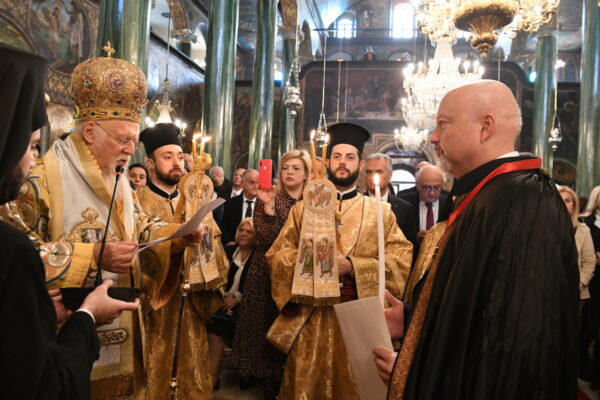 “Ανήκετε πλέον εις τον κύκλον των συνεργατών της ημών Μετριότητος και των συναγωνιστών αυτής διά την προάσπισιν των δικαίων της πρωτοθρόνου Εκκλησίας της Ορθοδοξίας, και δη εν τη ιδιοτήτι υμών ως εγκρατούς και εγκρίτου νομικού και κανονολόγου. Καλείσθε να εκφράζειτε το πνεύμα του Φαναρίου και τας αξίας του πανταχού και πάντοτε, και να δίδετε καλήν μαρτυρίαν εν των κόσμω, με ακλόνητον πιστότητα εις την πατρώαν παρακαταθήκην, αλλα και με σύγχρονον πνεύμα”, σημείωσε ο Παναγιώτατος στην ομιλία του προς τον νέο Άρχοντα.
