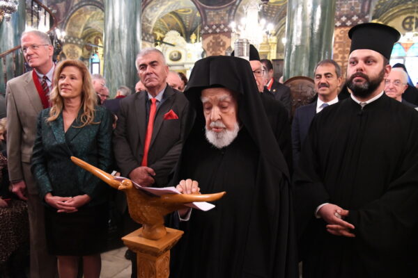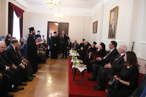 Στη συνέχεια τον Παναγιώτατο προσφώνησαν ο Μητροπολίτης Τρανουπόλεως κ. Γερμανός, Αρχιερατικώς Προϊστάμενος της Κοινότητος και ο κ. Γεώργιος Παπαλιάρης, Πρόεδρος της Εφοροεπιτροπής, ο οποίος αναφέρθηκε στα πεπραγμένα της Κοινότητος, καθώς καί στις σχεδιαζόμενες μελλοντικές δράσεις της. Στην αντιφώνησή του ο Παναγιώτατος, αφού συνεχάρη τον Μητροπολίτη Τρανουπόλεως και τον Πρόεδρο και τα μέλη της Εφοροεπιτροπής για το έργο τους, έκανε ιδιαίτερη αναφορά στην παρουσία του νέου Πρέσβη της Ελλάδος Μιχαήλ Χρήστου Διάμεση, στον οποίο ευχήθηκε καλή και καρποφόρο θητεία, επ΄αγαθώ των δύο γειτόνων και συμμάχων χωρών και των λαών τους. “Το Οικουμενικό μας Πατριαρχείον ευλογεί κάθε προσπάθειαν περαιτέρω προσεγγίσεως και συνεργασίας των, διά την ειρήνην και την ευστάθειαν εις την περιοχήν”, σημείωσε χαρακτηριστικά ο Πατριάρχης. Στη συνέχεια καλωσόρισε τα μέλη του Ελληνικού Κοινοβουλίου, και χαιρέτησε με εγκαρδιότητα την παρουσία των Αρχόντων Οφφικιαλίων του Θρόνου από τις ΗΠΑ, οι οποίοι πραγματοποιούν προσκυνηματική επίσκεψη, με επί κεφαλής τον νέο Ποιμενάρχη τους, Αρχιεπίσκοπο Αμερικής Ελπιδοφόρο.