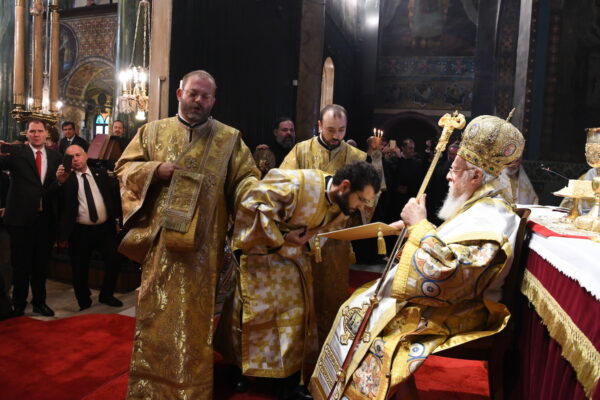 Στη συνέχεια τον Παναγιώτατο προσφώνησαν ο Μητροπολίτης Τρανουπόλεως κ. Γερμανός, Αρχιερατικώς Προϊστάμενος της Κοινότητος και ο κ. Γεώργιος Παπαλιάρης, Πρόεδρος της Εφοροεπιτροπής, ο οποίος αναφέρθηκε στα πεπραγμένα της Κοινότητος, καθώς καί στις σχεδιαζόμενες μελλοντικές δράσεις της. Στην αντιφώνησή του ο Παναγιώτατος, αφού συνεχάρη τον Μητροπολίτη Τρανουπόλεως και τον Πρόεδρο και τα μέλη της Εφοροεπιτροπής για το έργο τους, έκανε ιδιαίτερη αναφορά στην παρουσία του νέου Πρέσβη της Ελλάδος Μιχαήλ Χρήστου Διάμεση, στον οποίο ευχήθηκε καλή και καρποφόρο θητεία, επ΄αγαθώ των δύο γειτόνων και συμμάχων χωρών και των λαών τους. “Το Οικουμενικό μας Πατριαρχείον ευλογεί κάθε προσπάθειαν περαιτέρω προσεγγίσεως και συνεργασίας των, διά την ειρήνην και την ευστάθειαν εις την περιοχήν”, σημείωσε χαρακτηριστικά ο Πατριάρχης. Στη συνέχεια καλωσόρισε τα μέλη του Ελληνικού Κοινοβουλίου, και χαιρέτησε με εγκαρδιότητα την παρουσία των Αρχόντων Οφφικιαλίων του Θρόνου από τις ΗΠΑ, οι οποίοι πραγματοποιούν προσκυνηματική επίσκεψη, με επί κεφαλής τον νέο Ποιμενάρχη τους, Αρχιεπίσκοπο Αμερικής Ελπιδοφόρο.