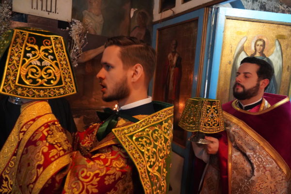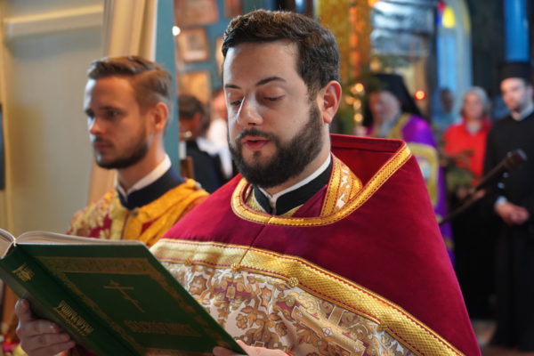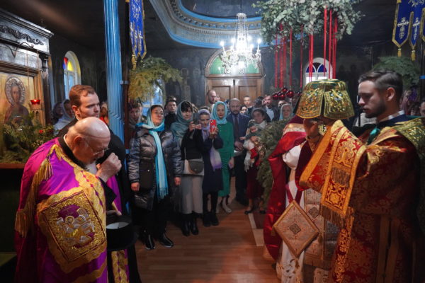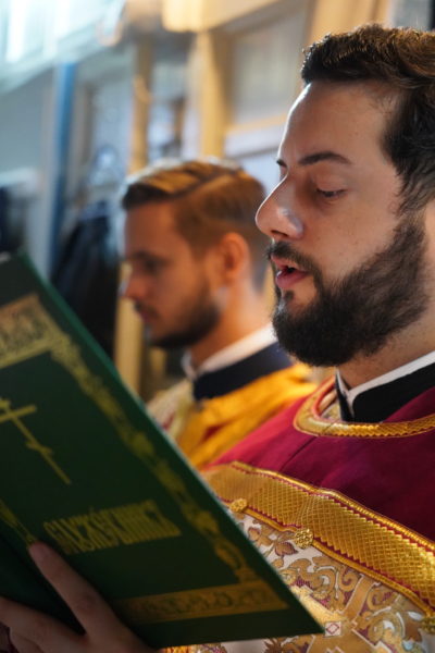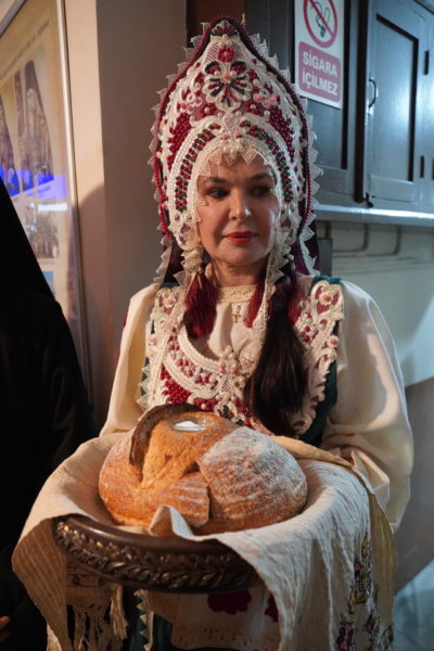 Τη Θεία Λειτουργία τέλεσε ο Πανοσιολ. Μ. Σύγκελλος κ. Ιάκωβος με τον Ιερολ. Πατριαρχικό Διάκονο κ. Επιφάνιο στα σλαβωνικά και έψαλε η γυναικεία χορωδία της ενορίας. Εκκλησιάστηκαν ο Σεβασμιώτατος Μητροπολίτης Προύσης κ. Ιωακείμ, με όμιλο πιστών από την Προύσα, ο Πανοσιολ. Αρχιμανδρίτης κ. Πέτρος, Ηγούμενος Essex, ο Οσιολ. Ιερομόναχος κ. Νικόλαος, υπεύθυνος του γειτονικού Μετοχίου της Ιεράς Μονής Αγίου Παντελεήμονος Αγίου Όρους, στον Γαλατά, μαζί με τους πατέρες που διακονούν σε αυτό, ο Γενικός Πρόξενος της Μολδαβίας στην Πόλη κ. Sergiu Gurduza, με την σύζυγό του, και πλήθος πιστών.