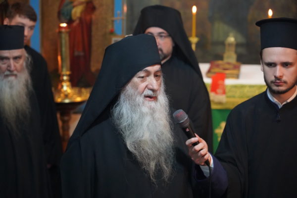 Στη συνέχεια, ο Παναγιώτατος προέτρεψε τον παριστάμενο σεβάσμιο Γέροντα Ζαχαρία, πνευματικό της Ιεράς Πατριαρχικής και Σταυροπηγιακής Μονής του Τίμιου Προδρόμου Essex Μ. Βρεταννίας και στενό συνεργάτη του ανιδρυτού της Μονής Αγίου Σωφρονίου, να απευθύνει λόγους πνευματικής οικοδομής προς το εκκλησίασμα. Όπως είπε ο Πατριάρχης, ο οποίος ανήμερα των Αγίων Θεοφανείων χειροτόνησε δύο αδελφούς της Μονής, σε Πρεσβύτερο και Διάκονο αντιστοίχως, επισκέφθηκε κατ’ επανάληψη και θαύμασε το πνευματικό έργο της Αδελφότητας της Μονής του Essex και την αφοσίωσή της στο Οικουμενικό Πατριαρχείο.