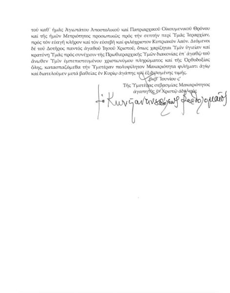 Διαβάστε την επιστολή του Παναγιωτάτου Οικουμενικού Πατριάρχου: