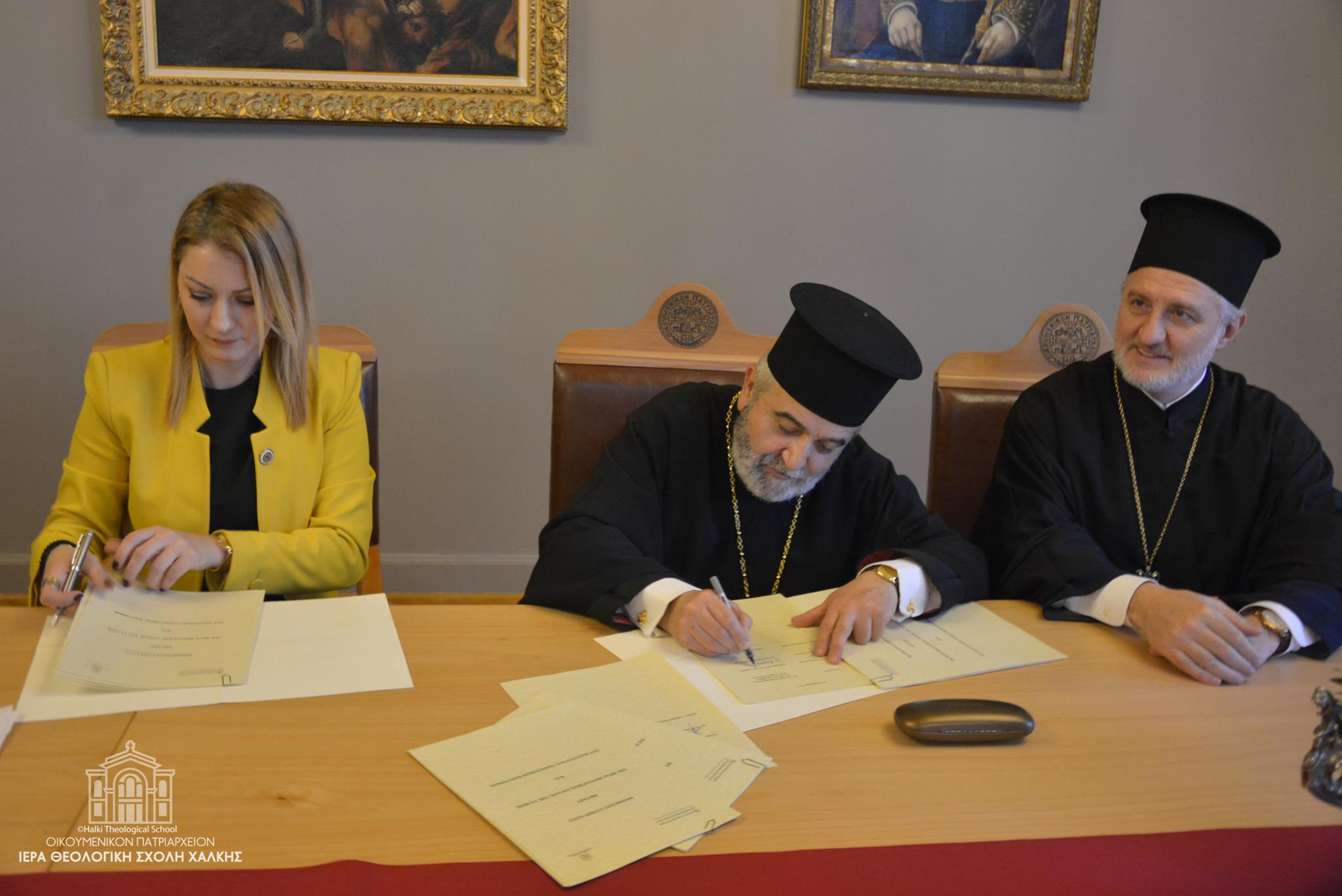 Μνημόνιο συνεργασίας μεταξύ της Ιεράς Θεολογικής Σχολής της Χάλκης και του Ινστιτούτου Γεωπονικών Επιστημών υπεγράφη χθες 6 Φεβρουαρίου, ανήμερα της μνήμης του Αγίου Φωτίου, στο νέο συνοδικό της Ιεράς Μονής Αγίας Τριάδος Χάλκης.