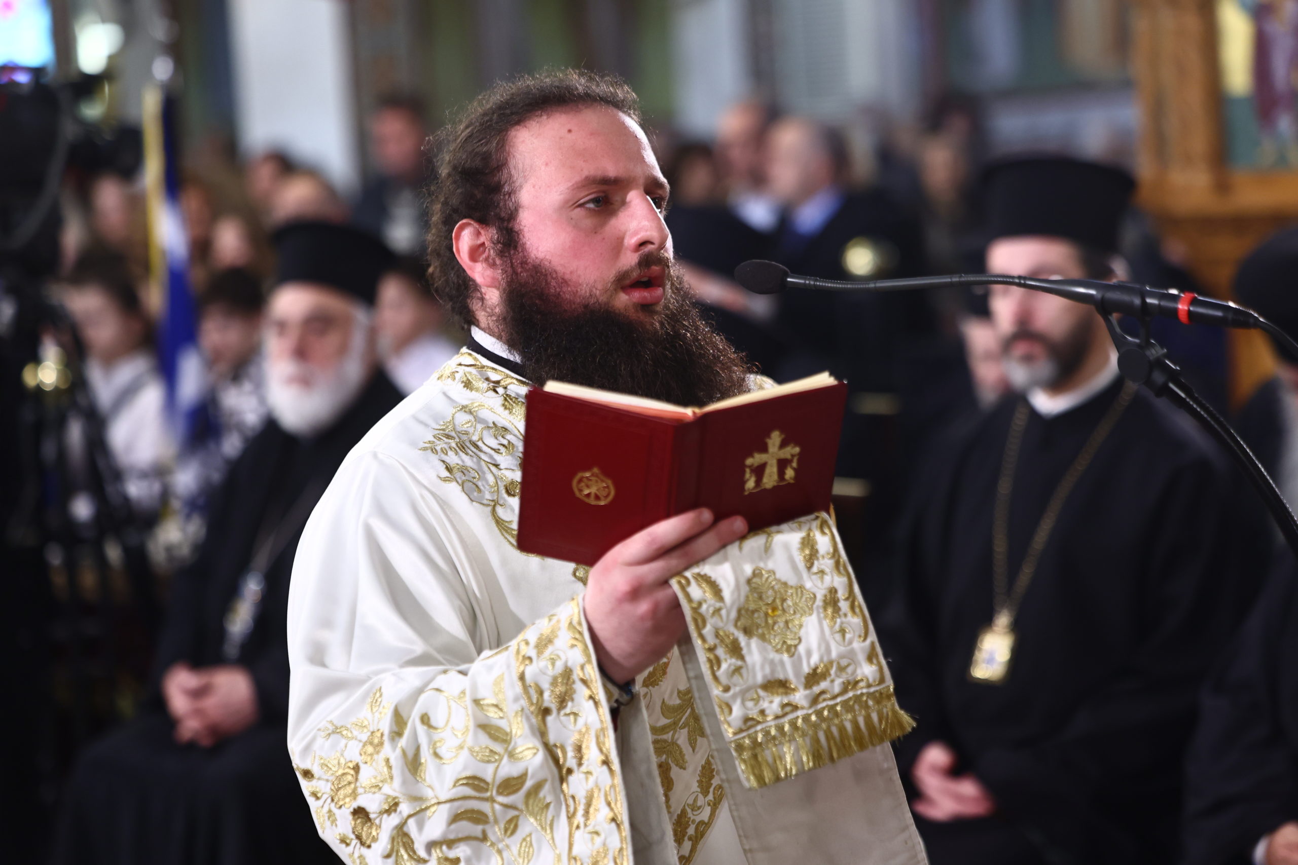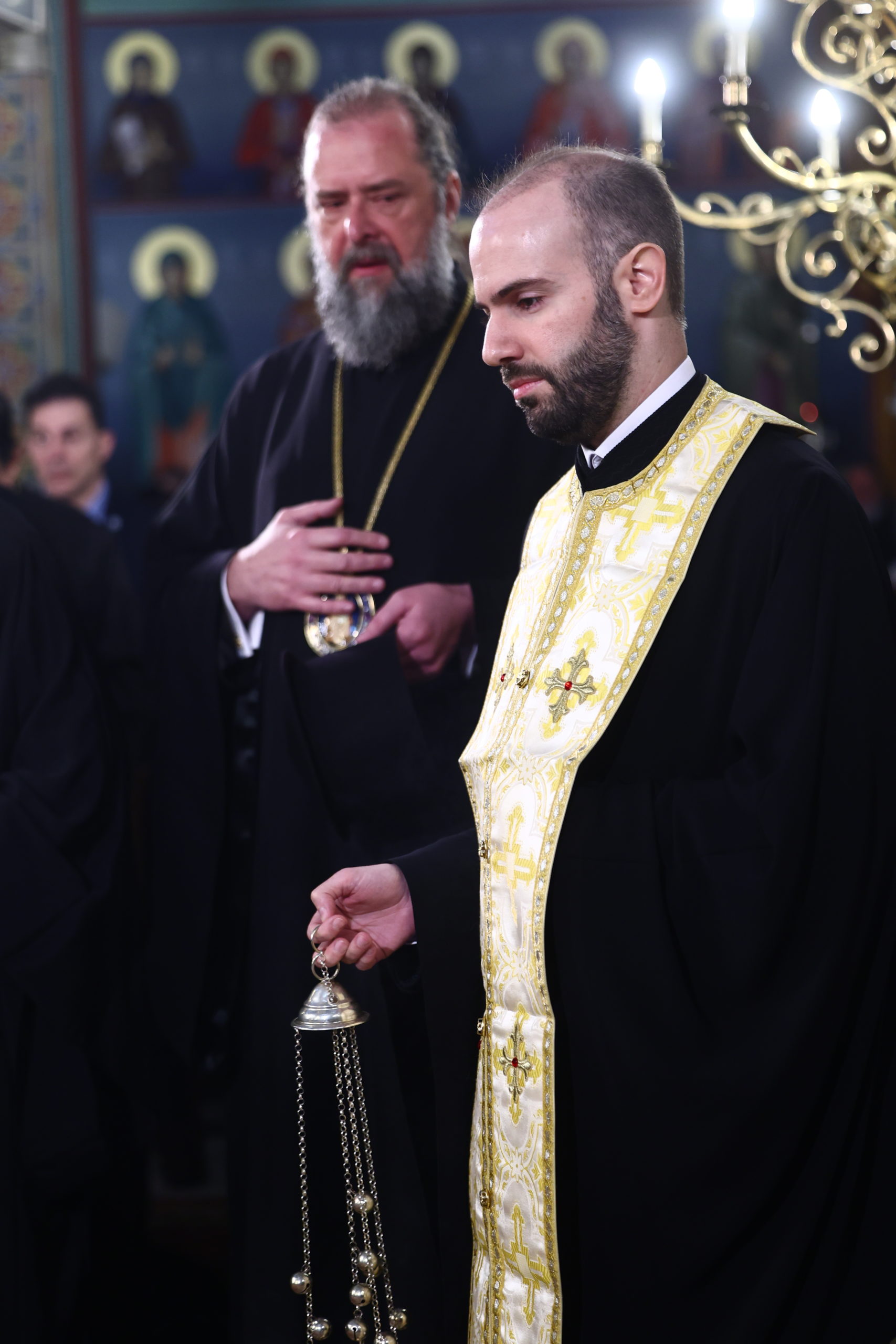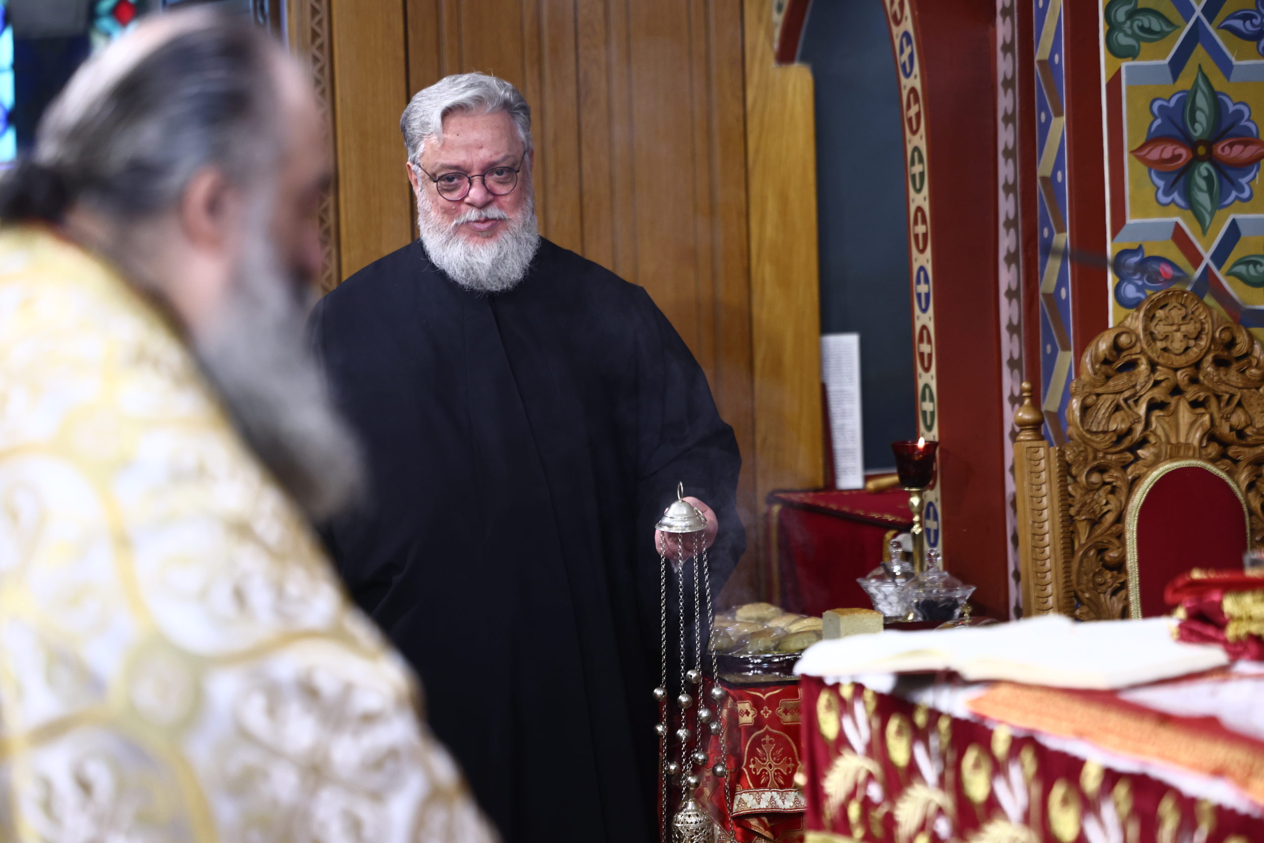 Την Θεία Λειτουργία τέλεσε ο Αρχιμανδρίτης π. Φώτιος Ζαρζαβατσάκης, Γενικός Αρχιερατικός Επίτροπος της Ιεράς Μητροπόλεως Θεσσαλονίκης. Παρέστησαν συμπροσευχόμενοι οι Σεβ. Μητροπολίτες Μιλήτου κ. Απόστολος, Βρυούλων κ. Παντελεήμων, Λαοδικείας κ. Θεοδώρητος, Σερβίων και Κοζάνης κ. Παύλος, Ιεραπύτνης και Σητείας κ. Κύριλλος, Σαράντα Εκκλησιών κ. Ανδρέας, Κίτρους, Κατερίνης και Πλατωμάνος κ. Γεώργιος, Νέας Κρήνης και Καλαμαριάς κ. Ιουστίνος, Θεσσαλονίκης κ. Φιλόθεος και οι Θεοφιλ. Επίσκοποι Αμορίου κ. Νικηφόρος, Ρηγίου κ. Ειρηναίος, Δαφνουσίας κ. Σμάραγδος.