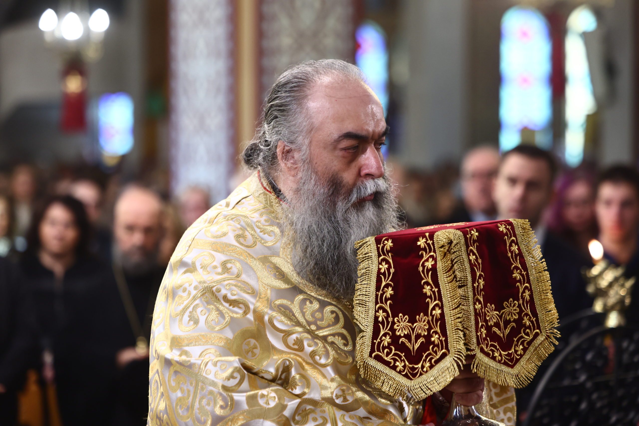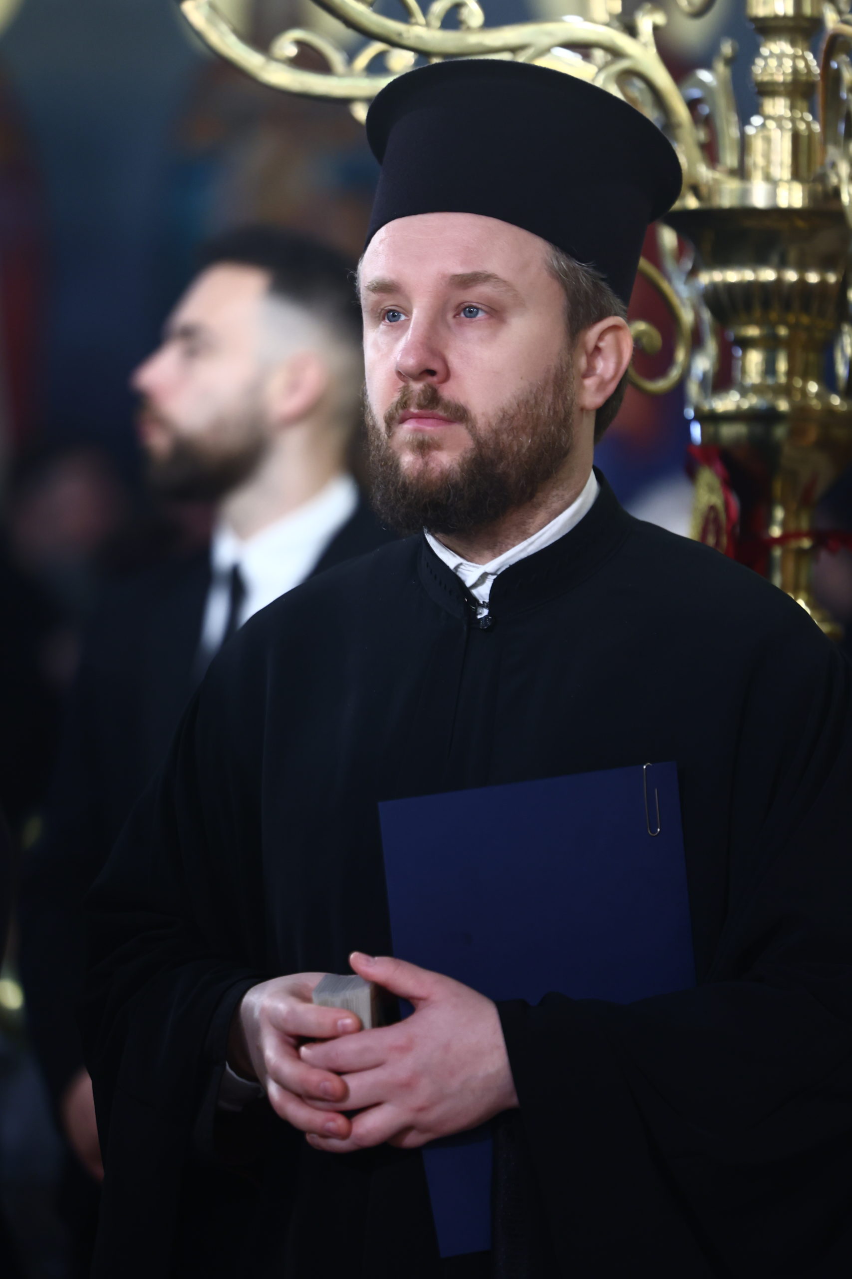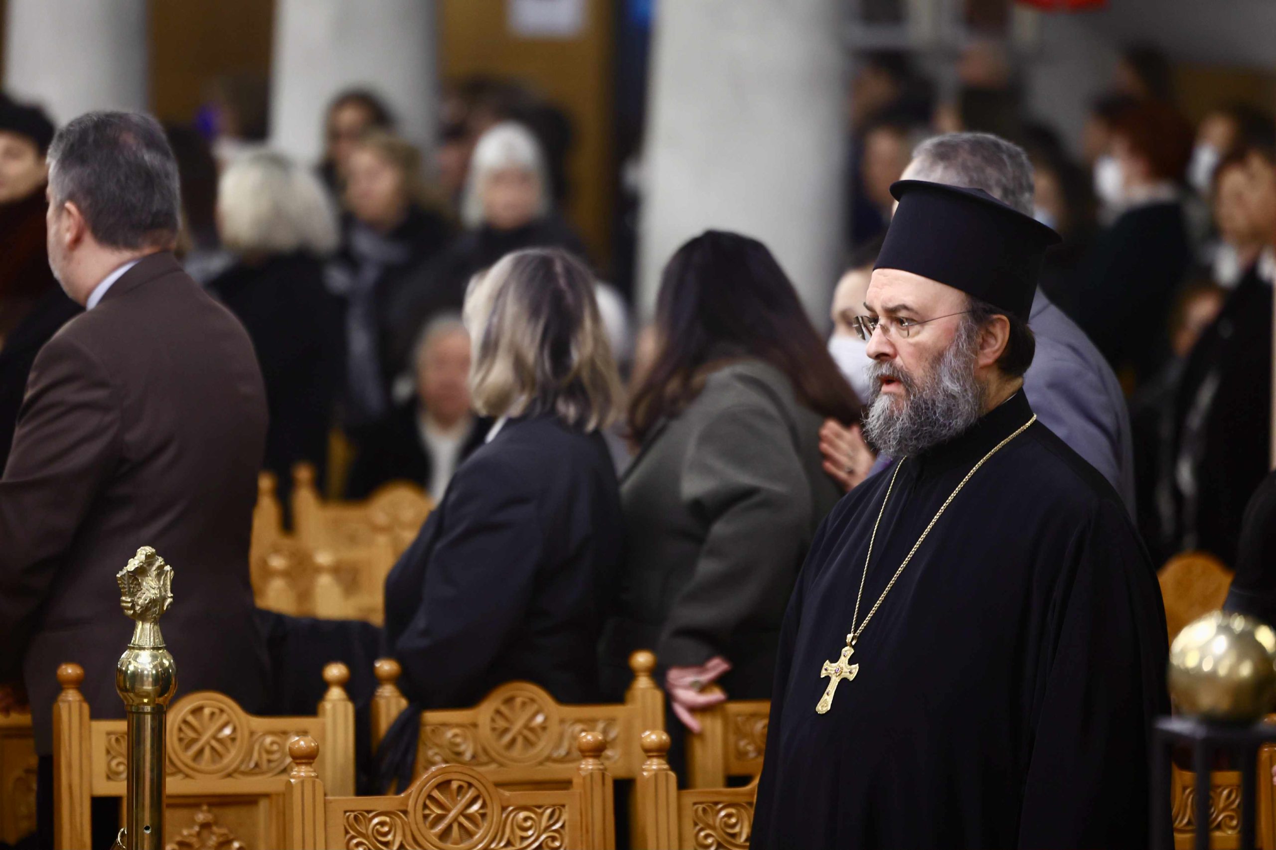 Την Θεία Λειτουργία τέλεσε ο Αρχιμανδρίτης π. Φώτιος Ζαρζαβατσάκης, Γενικός Αρχιερατικός Επίτροπος της Ιεράς Μητροπόλεως Θεσσαλονίκης. Παρέστησαν συμπροσευχόμενοι οι Σεβ. Μητροπολίτες Μιλήτου κ. Απόστολος, Βρυούλων κ. Παντελεήμων, Λαοδικείας κ. Θεοδώρητος, Σερβίων και Κοζάνης κ. Παύλος, Ιεραπύτνης και Σητείας κ. Κύριλλος, Σαράντα Εκκλησιών κ. Ανδρέας, Κίτρους, Κατερίνης και Πλατωμάνος κ. Γεώργιος, Νέας Κρήνης και Καλαμαριάς κ. Ιουστίνος, Θεσσαλονίκης κ. Φιλόθεος και οι Θεοφιλ. Επίσκοποι Αμορίου κ. Νικηφόρος, Ρηγίου κ. Ειρηναίος, Δαφνουσίας κ. Σμάραγδος.