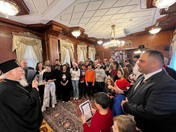 Τα παραδοσιακά κάλαντα έψαλλαν στον Παναγιώτατο Οικουμενικό Πατριάρχη κ.κ. Βαρθολομαίο νέοι και νέες της Ομογένειας από τον Μορφωτικό και Καλλιτεχνικό Σύνδεσμο Φερίκιοϊ – ΕΡ.Θ.Ο, αλλά και Καθηγητές και μαθητές του Ζωγραφείου Λυκείου και της Ζαππείου Σχολής.