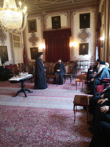 Οι υψηλοί επισκέπτες έγιναν δεκτοί από τον Καθηγούμενο, Θεοφιλέστατο Επίσκοπο Αραβισσού κ. Κασσιανό και την περί αυτόν αδελφότητα. Ο Θεοφιλέστατος προσεφώνησε καταλλήλως τον αγ. Αχρίδος αναφερόμενος στην ιστορία της Θεολογικής Σχολής και ιδίως στους αποφοίτους της που διεποίμαναν κατά το παρελθόν τις επαρχίες της περιοχής αυτής, και αναδεικνύων έτσι τους στενούς πνευματικούς δεσμούς της Σχολής με τις επαρχίες αυτές.