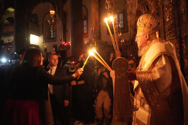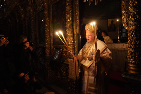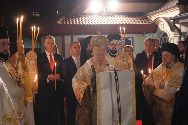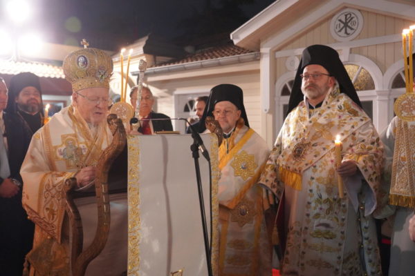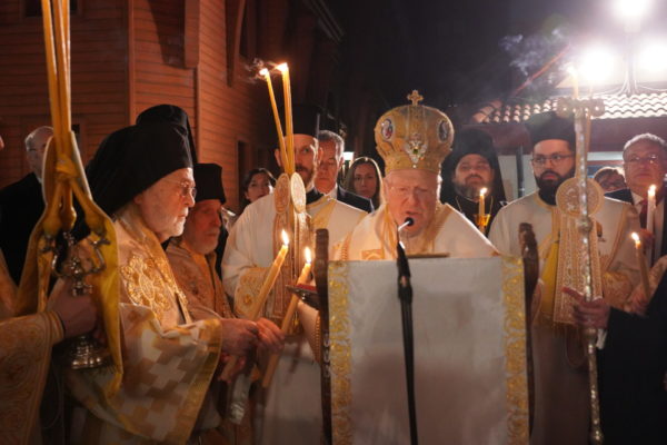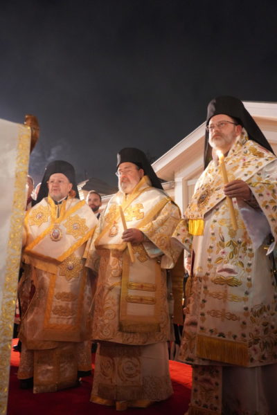 Η Α.Θ. Παναγιότης ο Οικουμενικός Πατριάρχης κ.κ. Βαρθολομαίος προέστη τα μεσάνυχτα του Μ.Σαββάτου της τελετής της Αναστάσεως στον αυλόγυρο του Πατριαρχείου, περιστοιχιζόμενος από τους Σεβ. Μητροπολίτες Φιλαδελφείας κ. Μελίτωνα, Μυριοφύτου και Περιστάσεως κ. Ειρηναίο, Μύρων κ. Χρυσόστομο, Ικονίου κ. Θεόληπτο και Σελευκείας κ. Θεόδωρο, καθώς και από τους κληρικούς της Πατριαρχικής Αυλής.