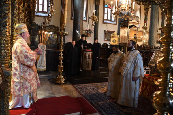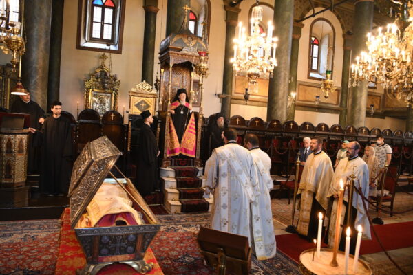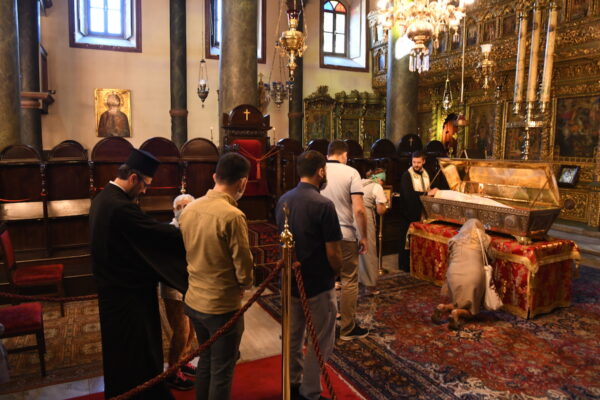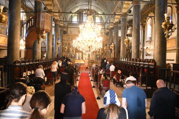 Εκκλησιάστηκαν οι Σεβ. Μητροπολίτες Γέρων Δέρκων κ. Απόστολος, Μύρων κ. Χρυσόστομος, Ικονίου κ. Θεόληπτος, Καλλιουπόλεως και Μαδύτου κ. Στέφανος, Σηλυβρίας κ. Μάξιμος και ο Επίσκοπος Τράλλεων κ. Βενιαμίν, καθώς και πλήθος πιστών από την Πόλη.