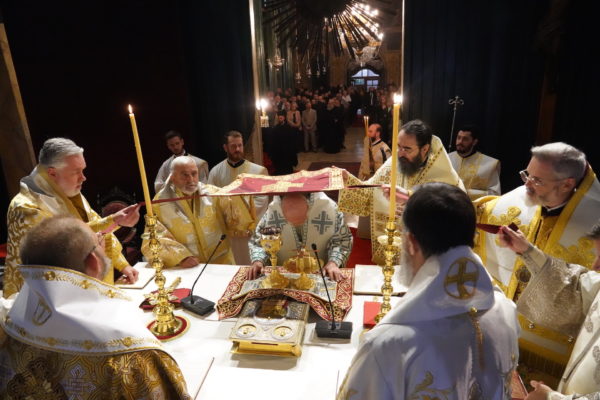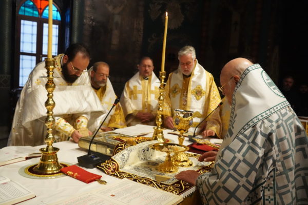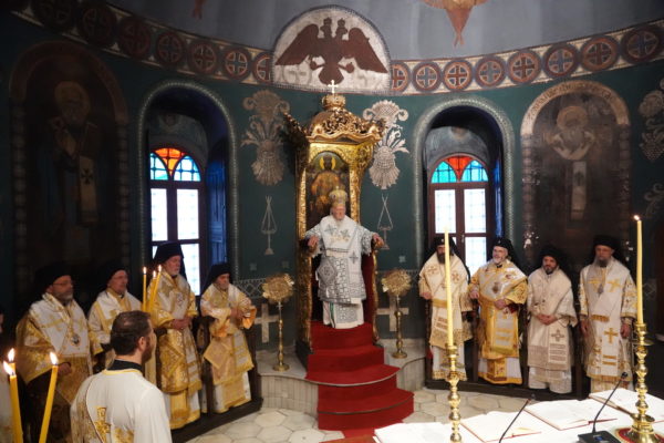 Με τον Παναγιώτατο συλλειτούργησαν οι Αρχιερείς Σεβ. Γέρων Δέρκων κ. Απόστολος, ο εν Δυτική και Νοτίω Ευρώπη του Πατριαρχείου Ρουμανίας κ. Ιωσήφ, Βελγίου κ. Αθηναγόρας, ο εν Δυτική και Νοτίω Ευρώπη του Πατριαρχείου Βουλγαρίας κ. Αντώνιος, Κυδωνιών κ. Αθηναγόρας, Σηλυβρίας κ. Μάξιμος και Σελευκείας κ. Θεόδωρος, καθώς και ο Θεοφιλ. Τανάγρας κ. Απόστολος, εκ της Εκκλησίας της Ελλάδος. Συμμετείχε, επίσης, ο Πανοσιολ. Αρχιμανδρίτης κ. Μεθόδιος, Ηγούμενος της Ι. Μονής Χιλιανδαρίου Αγίου Όρους.