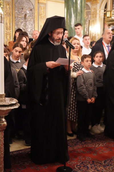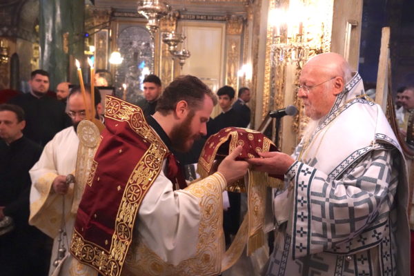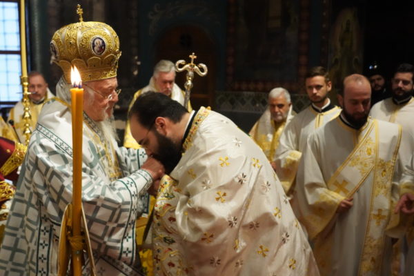 Πατέρες και αδελφοί, εκφράζομεν την χαράν της Κωνσταντινουπολίτιδος Εκκλησίας και της ημών Μετριότητος προσωπικώς επί τη χειροτονία του λίαν ημίν αγαπητού διακόνου Ιερωνύμου, ευχόμεθα εις όλους την Χάριν και την ευλογίαν της Κυρίας Θεοτόκου και παρακαλούμεν να προσευχηθήτε την ιεράν αυτήν και μοναδικήν στιγμήν της ζωής του π. Ιερωνύμου υπέρ της κατευοδώσεως της ιερατικής διακονίας του και της ικανώσεώς του εν τη Μεγάλη Εκκλησία.