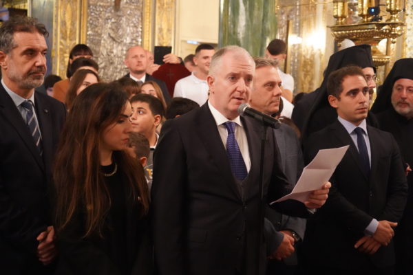 Προηγουμένως, τον Πατριάρχη προσφώνησαν με θερμούς λόγους ο Σεβ. Μητροπολίτης Σαράντα Εκκλησιών κ. Ανδρέας, Αρχιερατικώς Προϊστάμενος της Μεγαλωνύμου Κοινότητος Σταυροδρομίου, και ο Πρόεδρος αυτής Εντιμ. κ. Γεώργιος Παπαλιάρης.