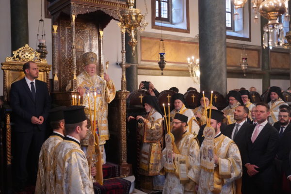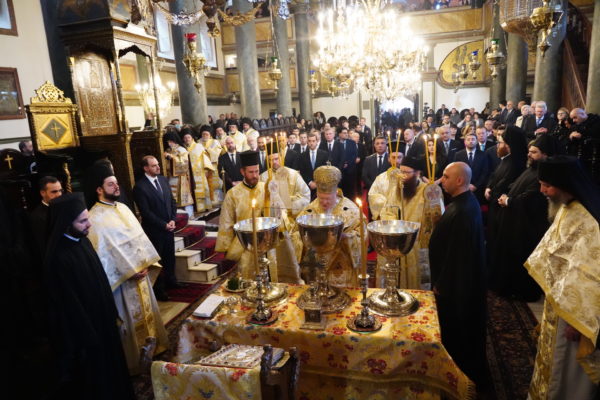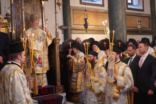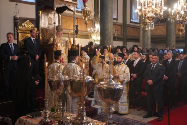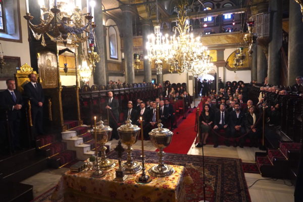 Εκκλησιάστηκαν οι Εξοχ. Υφυπουργός Εξωτερικών της Ελλάδος κ. Γεώργιος Κώτσηρας, εκπροσωπώντας την Eλληνική Κυβέρνηση, ο Πρόεδρος του ΣΥΡΙΖΑ – Προοδευτικής Συμμαχίας κ. Στέφανος Κασσελάκης, ο Πρόεδρος του ΠΑΣΟΚ – Κινήματος Αλλαγής κ. Νίκος Ανδρουλάκης, ο Εξοχ. Πρέσβης κ. Κωνσταντίνος Κούτρας, Γενικός Πρόξενος της Ελλάδος στην Πόλη, ο Εντιμ. κ. Roman Nedilskyi, Γενικός Πρόξενος της Ουκρανίας, οι Εντιμ. κ. Εμμανουήλ Κεφαλογιάννης, Ευρωβουλευτής, Ευάγγελος Αποστολάκης και Βασίλειος Κόκκαλης, μέλη της Βουλής των Ελλήνων, και πλήθος πιστών από την Πόλη και προσκυνητές από το εξωτερικό