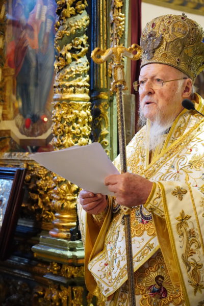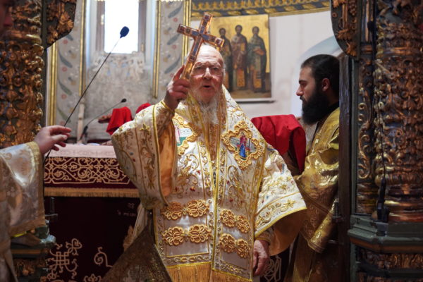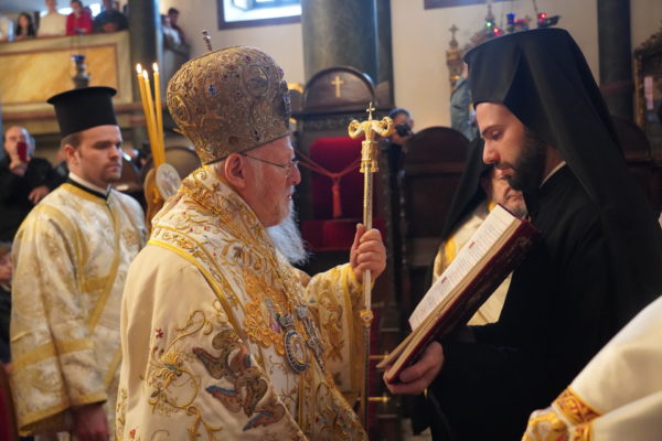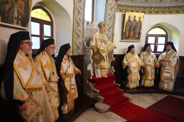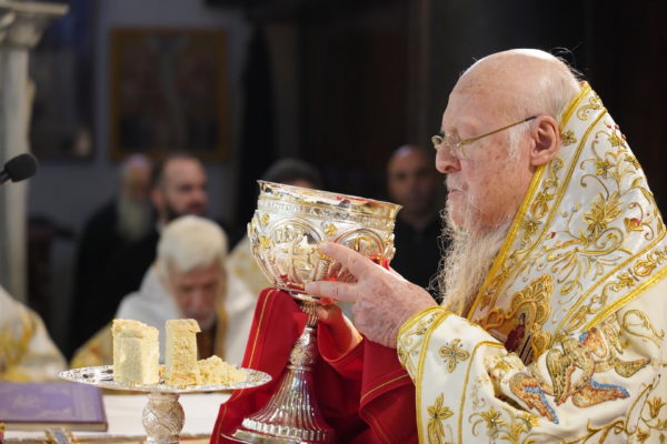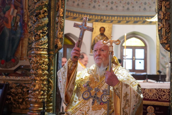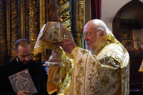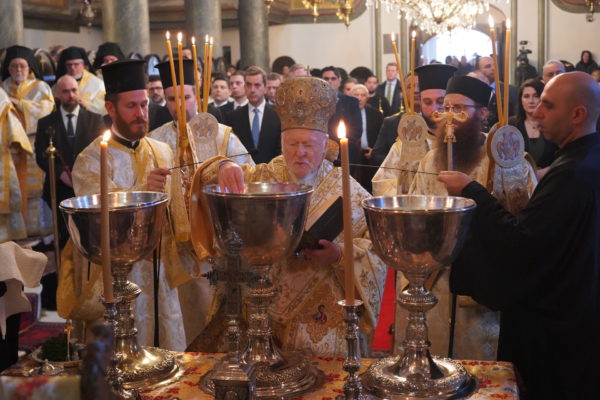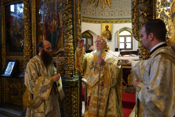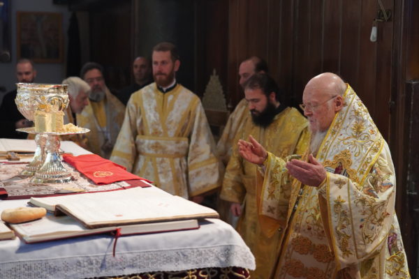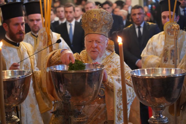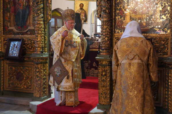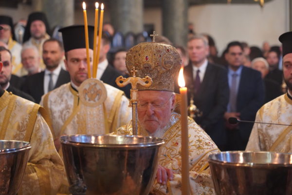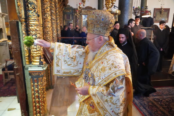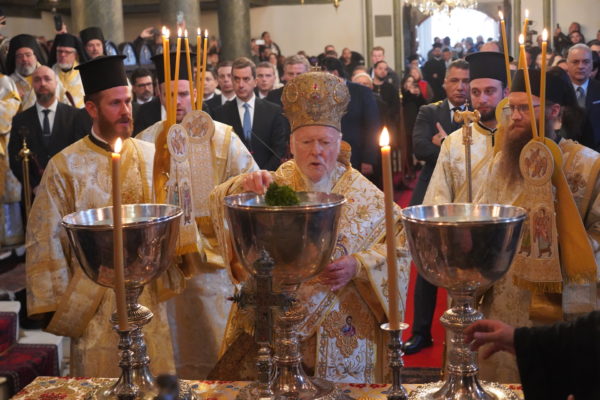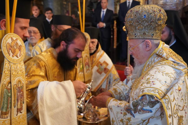 Η Α.Θ. Παναγιότης ο Οικουμενικός Πατριάρχης κ.κ. Βαρθολομαίος, μετά τον Όρθρο, κατά τον οποίο χοροστάτησε, τέλεσε τον Μεγάλο Αγιασμό, και στη συνέχεια προέστη της Θείας Λειτουργίας, συλλειτουργούντων των Σεβ. Μητροπολιτών Φιλαδελφείας κ. Μελίτωνος, Μυριοφύτου και Περιστάσεως κ. Ειρηναίου, Μύρων κ. Χρυσοστόμου, Ικονίου κ. Θεολήπτου, Γουϊνέας κ. Γεωργίου και Προύσης κ. Ιωακείμ.