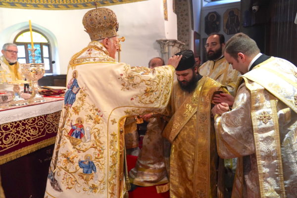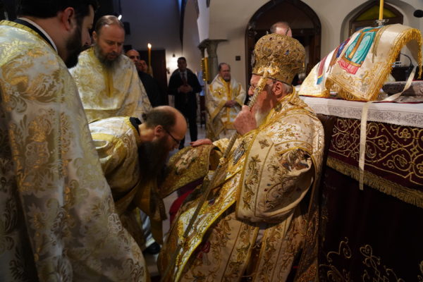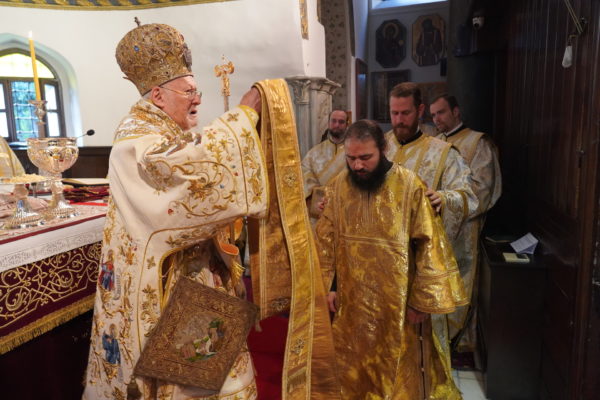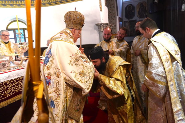 Κατά τη διάρκειά της τέλεσε την εις Πρεσβύτερον χειροτονία του Ιερολ. Διακόνου κ. Ανδρέου και την εις διάκονο χειροτονία του Οσιωτ. Μοναχού κ. Εφραίμ, αμφοτέρων από την αδελφότητα της Ιεράς Πατριαρχικής και Σταυροπηγιακής Μονής του Τίμιου Προδρόμου και Βαπτιστού Ιωάννου Essex Μ. Βρεταννίας.