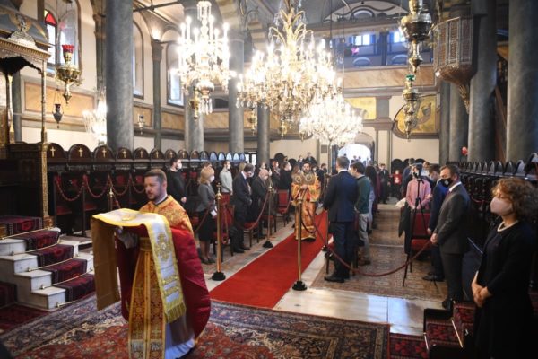 Εκκλησιάστηκαν Άρχοντες Οφφικιάλιοι της Αγίας του Χριστού Μεγάλης Εκκλησίας, η Γενική Πρόξενος της Ελλάδος στην Πόλη Ευγεν. κ. Γεωργία Σουλτανοπούλου, ο Γενικός Πρόξενος της Ουκρανίας στην Πόλη Εντιμ. κ. Oleksandr Gaman με συνεργάτες του, και πλήθος πιστών από την Πόλη, τηρουμένων των μέτρων προφύλαξης από την πανδημία.