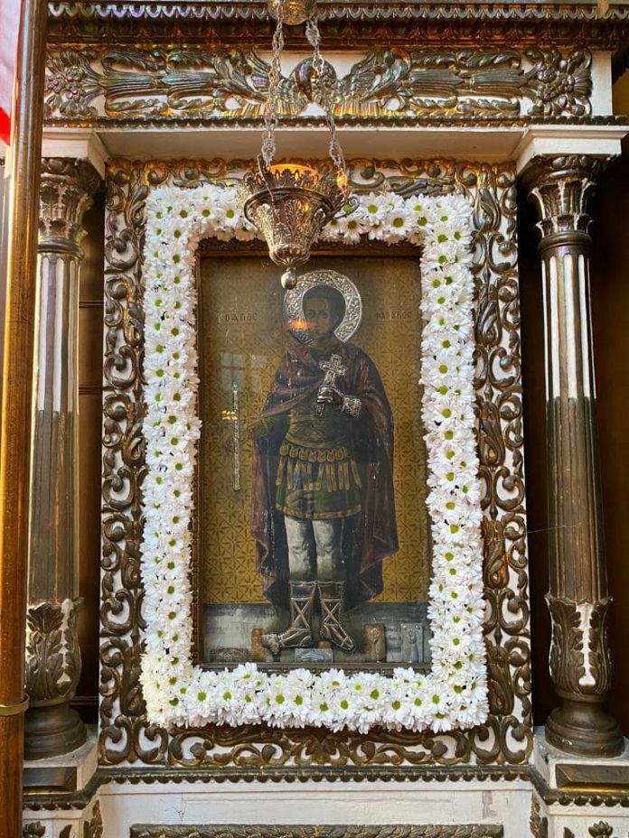 Με τη φροντίδα της Φιλοπτώχου Αδελφότητάς στολίστηκε με ωραία λευκά λουλούδια η εικόνα του εορταζόμενου Αγίου, προς τιμήν του οποίου πολλές χριστιανές νοικοκυρές ετοίμασαν και προσέφεραν τις καθιερωμένες φανουρόπιττες.