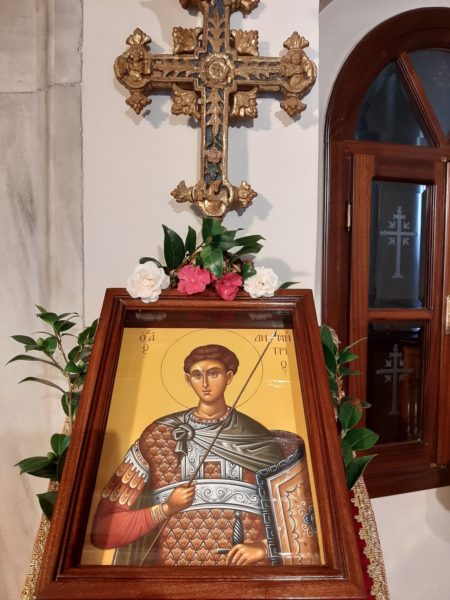 Επί τη μνήμη του Αγίου Δημητρίου του Μυροβλύτου τελέστηκε χθες, παραμονή της εορτής, ο Μέγας Εσπερινός στο ναΰδριο της Σχολής υπό του Καθηγουμένου, Θεοφιλεστάτου Επισκόπου Αραβισσού κ. Κασσιανού.