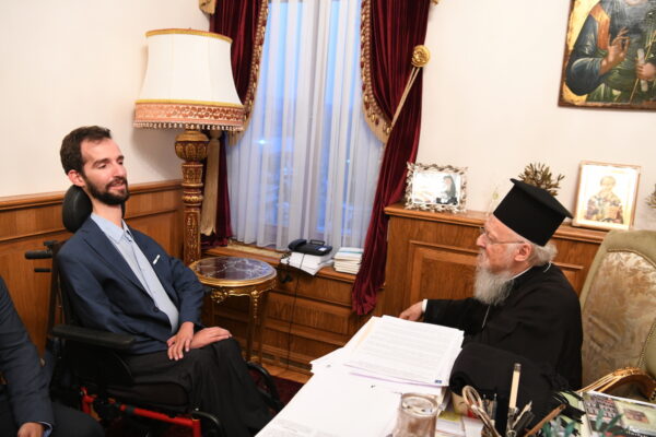 Ο Παναγιώτατος συνεχάρη τον κ.Κυμπουρόπουλο για την περιφανή εκλογή του στην Ευρωβουλή αλλά και συνολικά για τη μέχρι σήμερα πορεία του, επισημαίνοντας ότι αποτελεί παράδειγμα όχι μόνο για τα άτομα με αναπηρία αλλά για το σύνολο της κοινωνίας. Του ευχήθηκε, μάλιστα, κατά τη διάρκεια της θητείας του, να συμβάλλει, με την εμπειρία και τις γνώσεις του, στην ενίσχυση και εδραίωση των πολιτικών ίσων ευκαιριών για τα ΑμεΑ και για την ισότιμη πρόσβασή τους σε όλους τους τομείς της καθημερινής ζωής. Ταυτόχρονα ο Παναγιώτατος, επεσήμανε ότι ως κοινωνία οφείλουμε να σταθούμε απέναντι σε κάθε μορφή διάκρισης που μπορεί να εκδηλώνεται προς τα άτομα με αναπηρία, ενώ δεν παρέλειψε να εκφράσει και τη συμπαράστασή του προς τις οικογένειες τους, οι οποίες συχνά βρίσκονται αντιμέτωπες με κοινωνικά στερεότυπα αλλά και ποικίλες δυσκολίες.