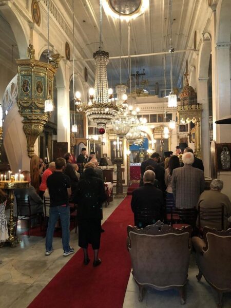 Μετά την Ιερά Ακολουθία, στον αύλειο χώρο της εκκλησίας, προσφέρθηκε στους προσκυνητές κέρασμα.