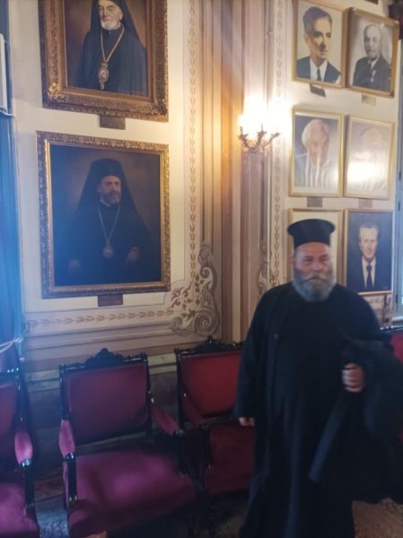 Ακολούθως, οι επισκέπτες ξεναγήθηκαν στις αίθουσες διδασκαλίας, την ιστορική Βιβλιοθήκη και τους λοιπούς χώρους της Σχολής και εν συνεχεία προεπέμφθησαν από τον Καθηγούμενο.