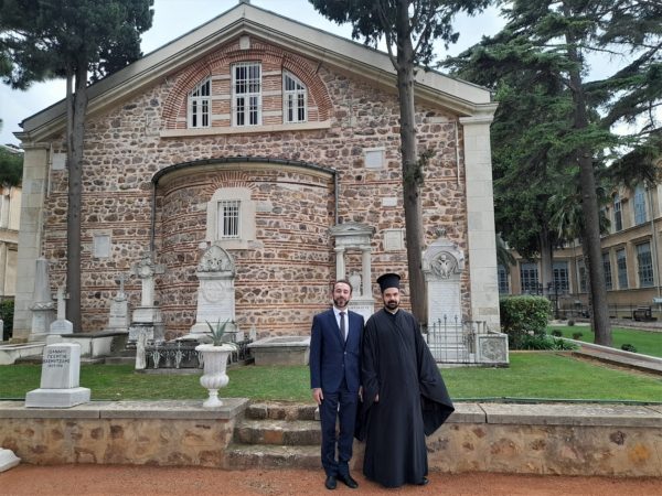 Τον Σεβασμιώτατο υποδέχθηκε ο Καθηγούμενος, Θεοφιλέστατος Επίσκοπος Αραβισσού κ. Κασσιανός, ο οποίος τον ξενάγησε στους χώρους της περιωνύμου Θεολογικής Σχολής, της οποίας η λειτουργία ανεστάλη από το Τουρκικό κράτος από το 1971.