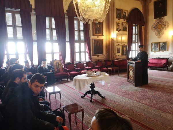Κατά την προσφώνησή του προς τον Σεβασμιώτατο κ. Ιουστίνο και τον περί αυτόν όμιλο προσκυνητών ο άγιος Καθηγούμενος αναφέρθηκε στην ιστορία της Σχολής, στην παρατεινομένη αδικία της αναστολής της λειτουργίας της προ 52 ετών, ενώ εξέφρασε την χαρά του για την παρούσα επίσκεψη.