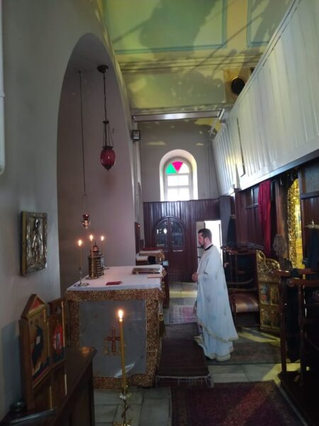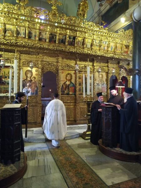 Συμπροσευχόμενος παρέστη και ο Καθηγούμενος της Ιεράς Μονής Αγίας Τριάδος Χάλκης, Θεοφιλέστατος Επίσκοπος Αραβισσού κ. Κασσιανός, ενώ εκκλησιάστηκαν πιστοί από το νησί, τηρουμένων των μέτρων προστασίας για την καταπολέμηση της πανδημίας.