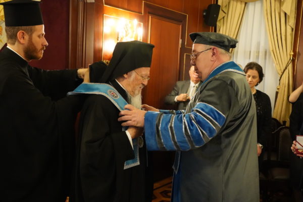 Μηνύματα για την παιδεία, τον άνθρωπο, την ειρήνη, την δικαιοσύνη, τον διάλογο και την προστασία του φυσικού περιβάλλοντος, τα οποία πηγάζουν από την διδασκαλία της Εκκλησίας και βρίσκουν τις ρίζες τους στα βαθύτερα νοήματα του χριστιανισμού, έστειλε ο Οικουμενικός Πατριάρχης κ.κ. Βαρθολομαίος κατά την Τελετή αναγόρευσης του σε Επίτιμο Διδάκτορας του Κρατικού Πανεπιστημίου του Σοχούμι της Γεωργίας.