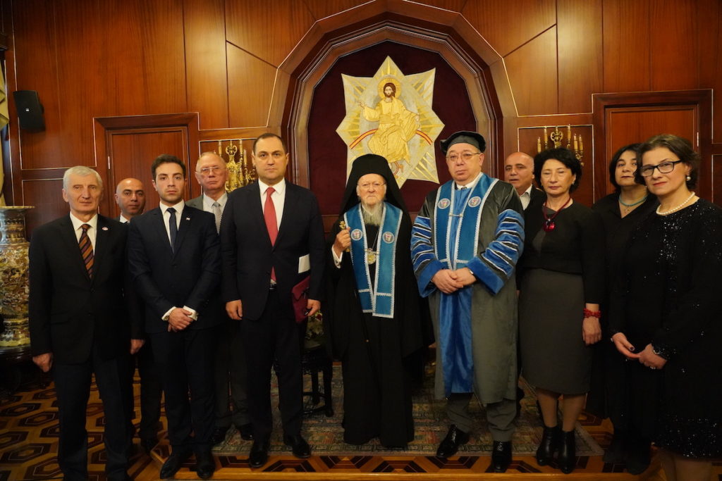 Ο Πρύτανης του Πανεπιστημίου του Σοχούμι Καθηγητής κ. Zurab Khonelidze, προήδρευσε της Τελετής, παρουσία μελών του Ακαδημαϊκού Συμβουλίου, και αναφέρθηκε, στην ομιλία του, στην διακονία και τη συνολική προσφορά του Παναγιωτάτου, καθώς και στους στενούς πνευματικούς δεσμούς του Οικουμενικού Θρόνου με την Εκκλησία και τον λαό της Γεωργίας.