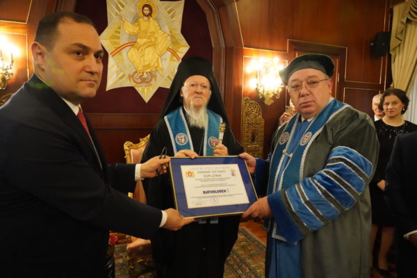 Μηνύματα για την παιδεία, τον άνθρωπο, την ειρήνη, την δικαιοσύνη, τον διάλογο και την προστασία του φυσικού περιβάλλοντος, τα οποία πηγάζουν από την διδασκαλία της Εκκλησίας και βρίσκουν τις ρίζες τους στα βαθύτερα νοήματα του χριστιανισμού, έστειλε ο Οικουμενικός Πατριάρχης κ.κ. Βαρθολομαίος κατά την Τελετή αναγόρευσης του σε Επίτιμο Διδάκτορας του Κρατικού Πανεπιστημίου του Σοχούμι της Γεωργίας.