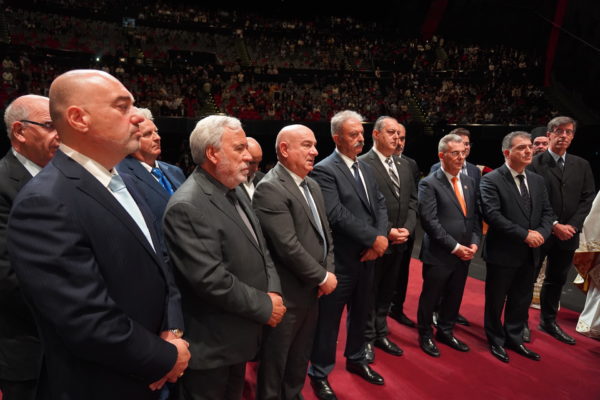 Νέους Άρχοντες Οφφικίαλους του Οικουμενικού Πατριαρχείου χειροθέτησε ο Οικουμενικός Πατριάρχης κ.κ. Βαρθολομαίος μετά το πέρας της Θείας Λειτουργίας  που τελέστηκε στο στάδιο International Convention Centre του Σύδνεϋ.