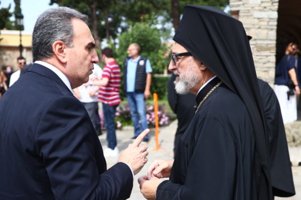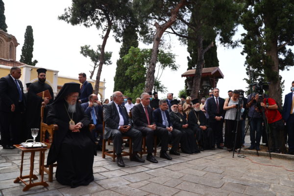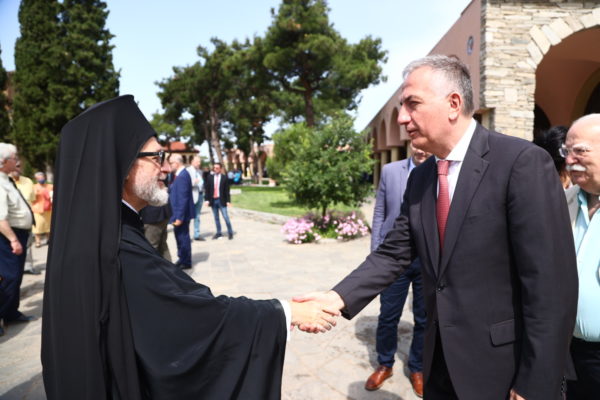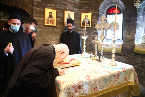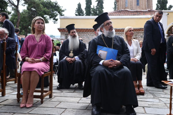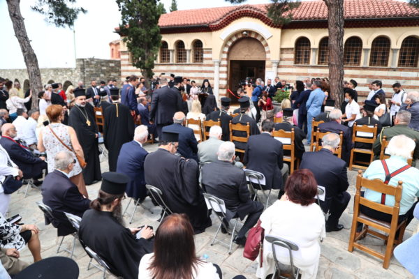 Τον Παναγιώτατο και τη συνοδεία του υποδέχτηκαν ο Καθηγούμενος της Μονής, Θεοφιλέστατος Επίσκοπος Αμορίου κ. Νικηφόρος και ο Πρόεδρος του Ιδρύματος κ. Συεμών Πασχαλίδης, Καθηγητής της Θεολογικής Σχολής ΑΠΘ. Στην τελετή παρέστησαν, μεταξύ άλλων, οι Μητροπολίτες Μετρών και Αθύρων κ. Δημήτριος, Βρυούλων κ. Παντελεήμων, Φθιώτιδος κ. Συμεών, ο Πρωτοσύγκελος της Ιεράς Μητροπόλεως Θεσσαλονίκης, Αρχιμανδρίτης Ιάκωβος Αθανασίου, η Υφυπουργός Παιδείας και Θρησκευμάτων κ. Ζέττα Μακρή και ο Υφυπουργός Εσωτερικών (Μακεδονίας – Θράκης), κ. Σταύρος Καλαφάτης, ο Πολιτικός Διοικητής του Αγίου Όρους κ. Αθνάσιος Μαρτίνος, ο Βουλευτής του ΣΥΡΙΖΑ κ. Ιωάννης Αμανατίδης.