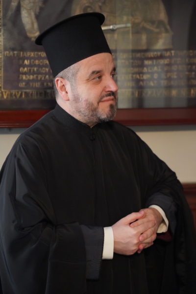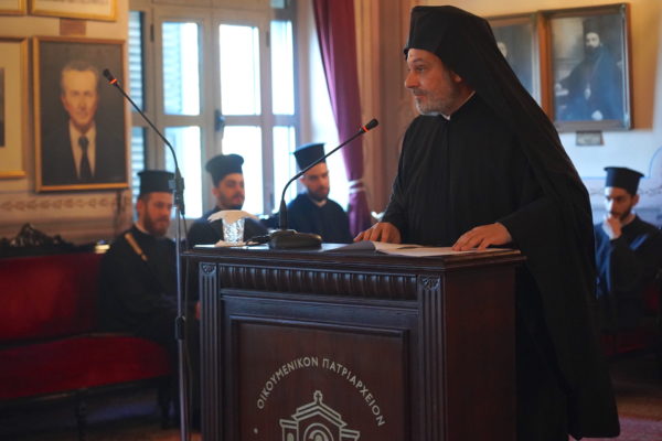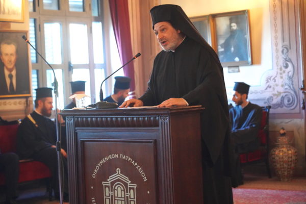 Προηγουμένως, τον Παναγιώτατο προσεφώνησε ο Θεοφιλέστατος Επίσκοπος Αραβισσού κ. Κασσιανός, Ηγούμενος της Μονής, ο οποίος, μεταξύ άλλων, αναφέρθηκε, επίσης, και στις εν εξελίξει ανακαινιστικές εργασίες στο επιβλητικό κτήριο της ιστορικής Θεολογικής Σχολής.