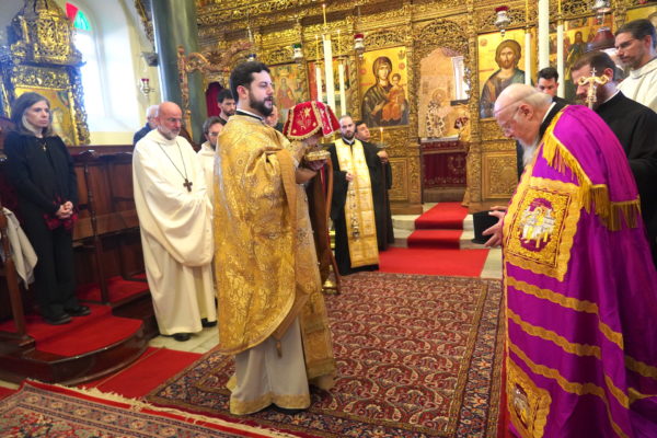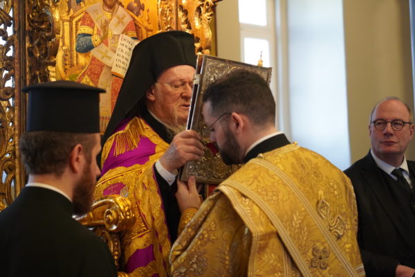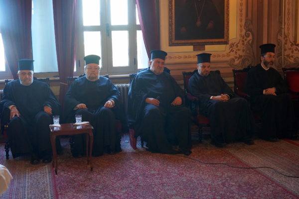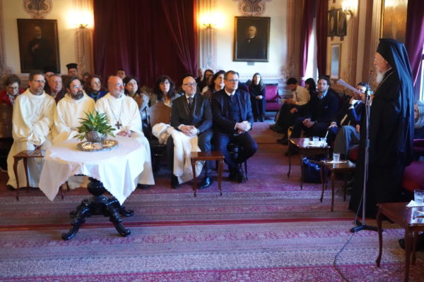 Τέλος, ο Παναγιώτατος καλωσόρισε στην αγγλική γλώσσα την Γενική Πρόξενο των ΗΠΑ στην Πόλη, καθώς και στην ιταλική τον Πανοσιολ. Ηγούμενο του Μοναστηριού του Bose και τα μέλη της Αδελφότητός του.