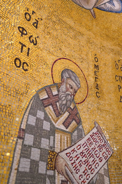 Σε άλλο σημείο της ομιλίας του, ο Πατριάρχης, αναφέρθηκε εκτενώς στον εορταζόμενο και τιμώμενο Μέγα Φώτιο, επισημαίνοντας, μεταξύ άλλων, ότι “συνεδύαζεν εις το πρόσωπόν του την ελληνικήν παιδείαν με την Ορθοδοξίαν της πίστεως. Με την πολυδιάστατον παρουσίαν και δράσιν του εις το πεδίον της πολιτικής και του πολιτισμού, εις τα γράμματα και εις τον εκκλησιαστικόν και πνευματικόν χώρον, επέδρασε καθοριστικώς εις την ιστορικήν πορείαν του Βυζαντίου, εις την αναγέννησιν και άνθησιν των ελληνικών γραμμάτων και εις την δόμησιν της ιδιοπροσωπίας της Ορθοδοξίας”. Όπως είπε, “ο Ιερός Φώτιος υπήρξε πρωτίστως βαθυστόχαστος θεολόγος, εις τον οποίον η φιλολογική και φιλοσοφική κατάρτισις και η αρχαιοελληνική κληρονομία ελειτούργησαν ως πολύτιμον εργαλείον διά την ανάδειξιν της θεολογίας ως της «υψίστης παιδείας». Η προσφορά του εις τα γράμματα είναι τεθεμελιωμένη εις όλα όσα προηγήθησαν ως συνάντησις Ελληνισμού και Χριστιανισμού και εγέννησαν τον «εκχριστιανισμένον Ελληνισμόν», που αποτελεί αναπόσπαστον τμήμα της ιστορίας του παγκοσμίου πολιτισμικού γίγνεσθαι”.
