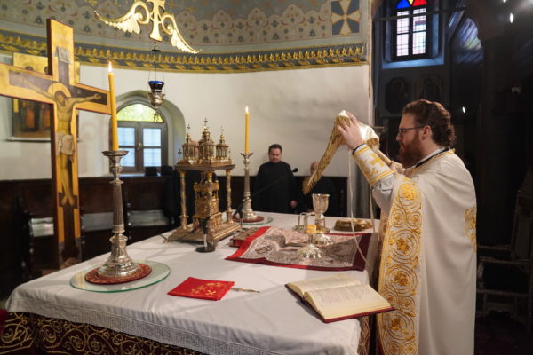 Τα Ιερά Λείψανά του Αγίου εκτέθηκαν στον σολέα προς προσκύνηση από τους πιστούς.