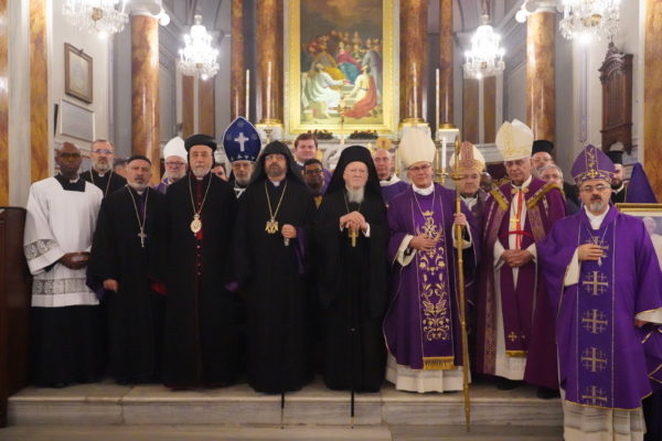 Ο Οικουμενικός Πατριάρχης κ.κ. Βαρθολομαίος, συνοδευόμενος από τους Μέγα Πρωτοσύγκελλο κ. Θεόδωρο και Μ. Εκκλησιάρχη κ. Αέτιο, Διευθυντή του Ιδιαιτέρου Πατριαρχικού Γραφείου, μετέβη, το Σάββατο, 7 Ιανουαρίου 2023, το απόγευμα, ανταποκρινόμενος σε πρόσκληση του Επισκόπου των εν τη Πόλει Ρωμαιοκαθολικών κ. Massimiliano Palinuro, στον ΡΚαθολικό Ναό του Αγίου Πνεύματος στο Harbiye, όπου παρέστη στην επιμνημόσυνη λειτουργία για τον μακαριστό επίτιμο Πάπα Βενέδικτο ΙΣΤ’.