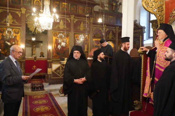 Προηγουμένως, τον Πατριάρχη προσφώνησαν ο Θεοφιλ. Επίσκοπος Αλικαρνασσού, και ο Μουσικολ. κ. Αντώνιος Παριζιάνος.