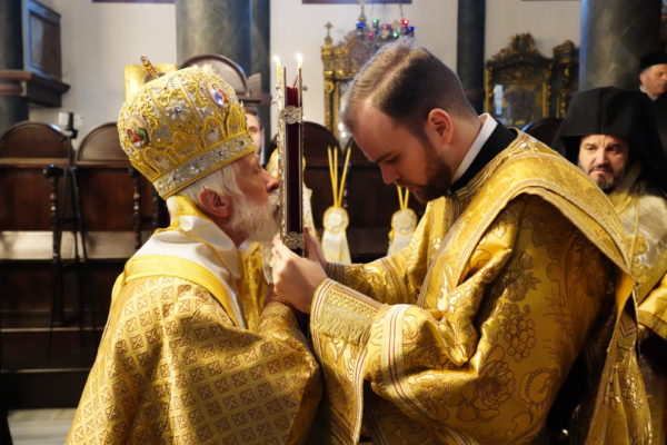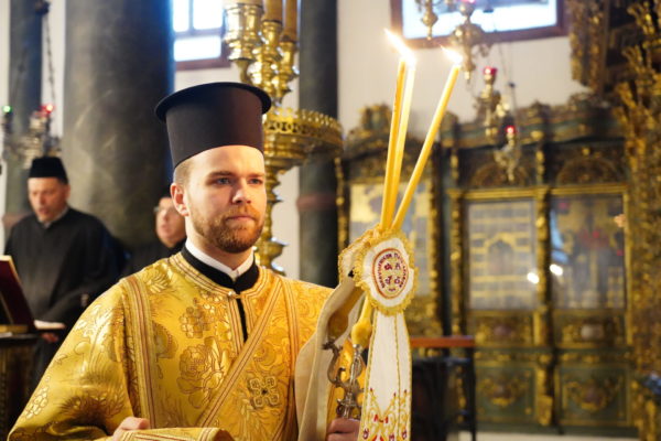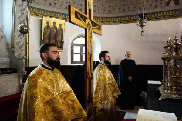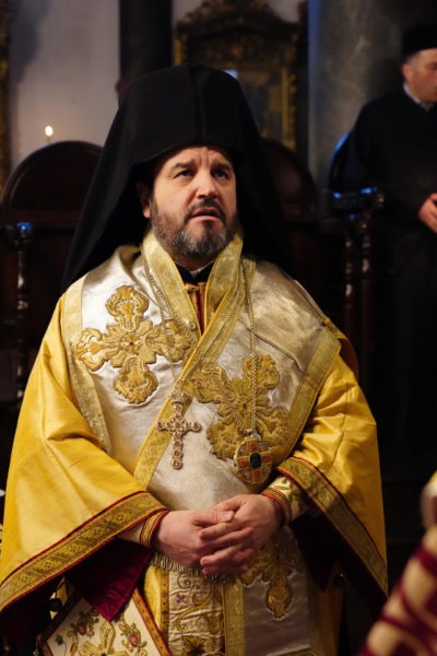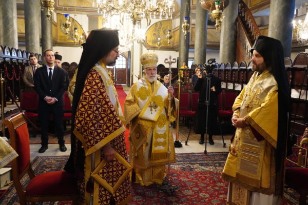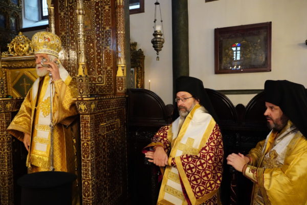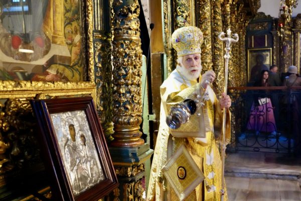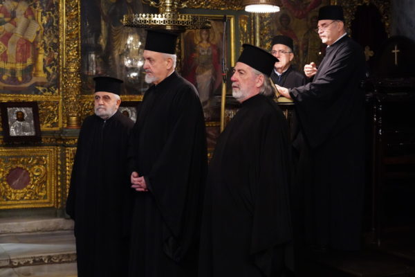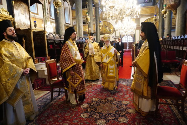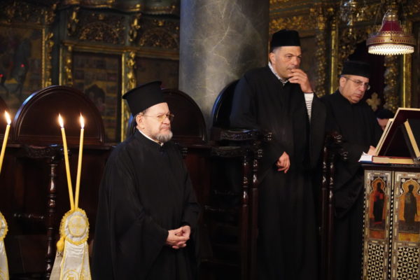 Εκκλησιάστηκαν οι Αρχιερείς Σεβ. Γέρων Χαλκηδόνος κ. Εμμανουήλ, Γέρων Δέρκων κ. Απόστολος, Μυριοφύτου και Περιστάσεως κ. Ειρηναίος, Θυατείρων και Μ. Βρεταννίας κ. Νικήτας, Καλλιουπόλεως και Μαδύτου κ. Στέφανος, ο Θεοφιλ. Αλικαρνασσού κ. Αδριανός, κληρικοί, πιστοί από την Πόλη και προσκυνητές από το εξωτερικό.