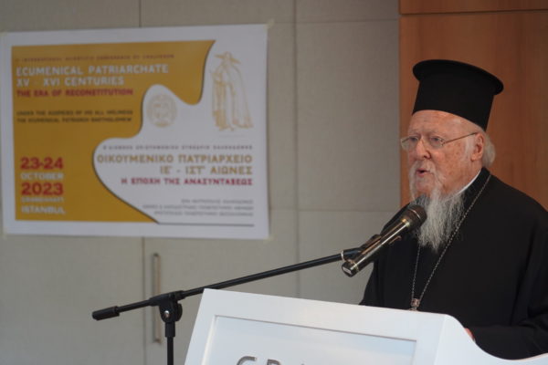 Ο Παναγιώτατος Οικουμενικός Πατριάρχης κ.κ. Βαρθολομαίος κήρυξε την έναρξη των εργασιών του Β’ Διεθνούς Επιστημονικού Συνεδρίου Χαλκηδόνος το πρωί της Δευτέρας 23 Οκτωβρίου 2023, με θέμα «Οικουμενικό Πατριαρχείο, ΙΕ’-ΙΣΤ’ Αιώνες – Η εποχή την ανασυντάξεως».