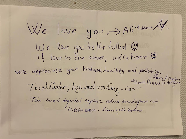 Η ομάδα των νέων αποφοίτων του Harvard ενθουσιάστηκε με την παρουσία και την αμεσότητα της ομιλίας του Πατριάρχου και του προσέφεραν τις εντυπώσεις τους σε χειρόγραφες σημειώσεις που έγραψαν αυθόρμητα.