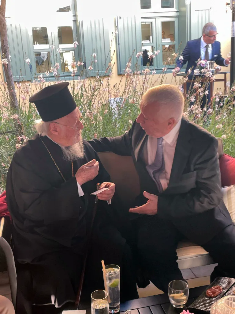Στο περιθώριο της εκδήλωσης ο Παναγιώτατος Οικουμενικός Πατριάρχης κ.κ. Βαρθολομαίος είχε ολιγόλεπτη συνάντηση σε εγκάρδιο κλίμα με τον Δήμαρχο Δυτικής Λέσβου Ταξιάρχη Βέρρο