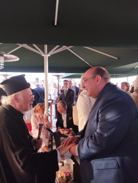 Στο περιθώριο της εκδήλωσης ο Παναγιώτατος Οικουμενικός Πατριάρχης κ.κ. Βαρθολομαίος είχε ολιγόλεπτη συνάντηση σε εγκάρδιο κλίμα με τον Δήμαρχο Δυτικής Λέσβου Ταξιάρχη Βέρρο