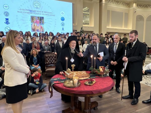 Στο πλαίσιο της εκδηλώσεως ο Παναγιώτατος ευλόγησε την παραδοσιακή Αγιοβασιλόπιττα και ευχήθηκε προς όλους τους μαθητές, τους αποφοίτους και τους εκπαιδευτικούς των Ομογενειακών σχολείων της Πόλεως και της Ίμβρου, αλλά και προς τα μέλη των Διοικητικών Συμβουλίων των Ιδρυμάτων και των φορέων της Ομογενείας που εργάζονται για τη νεολαία της, ένα καρποφόρο και ειρηνικό νέο έτος.