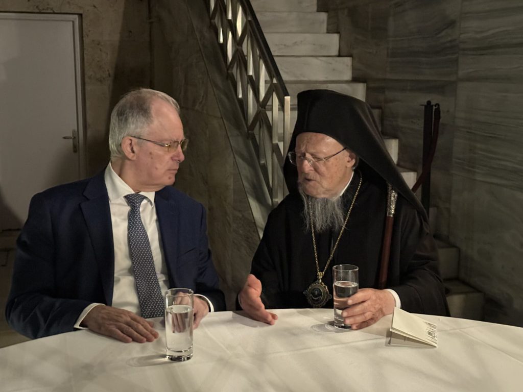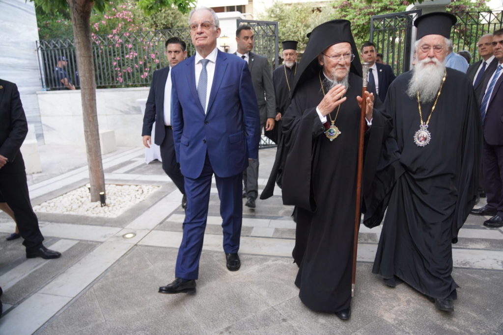 Ο Εξοχ. Πρόεδρος της Ελληνικής Δημοκρατίας κ. Κωνσταντίνος Τασούλας υποδέχθηκε τον Οικουμενικό Πατριάρχη, ο οποίος τον συνεχάρη και εκ του σύνεγγυς για την εκλογή του στο ύπατο αξίωμα της Ελληνικής Πολιτείας, με την ευκαιρία αυτής της πρώτης συνάντησής τους με τη νέα του ιδιότητα.